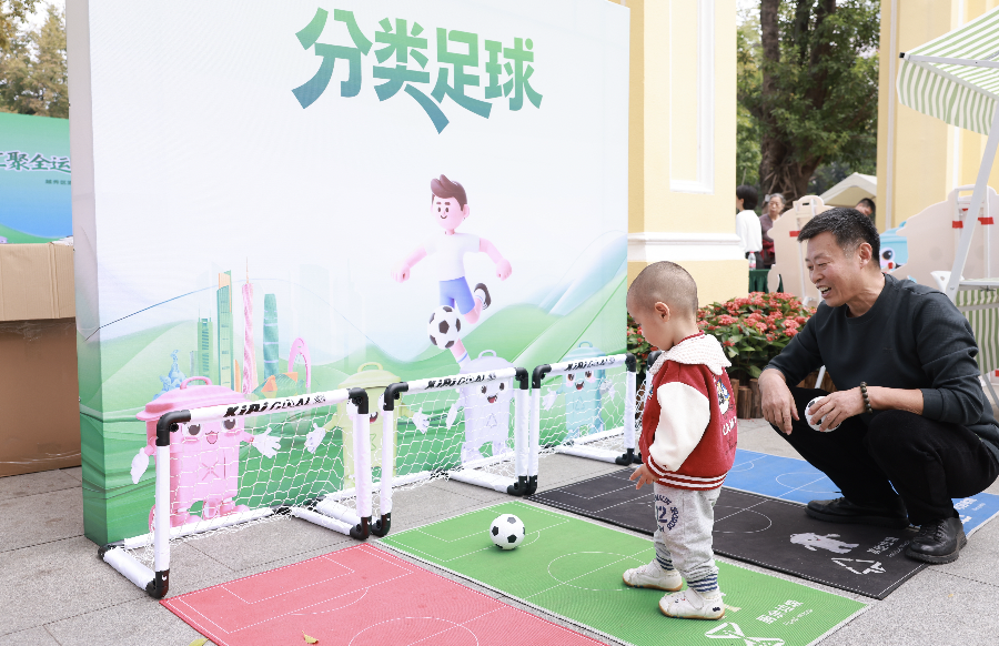 现场的垃圾分类小游戏吸引了不少市民的参与。