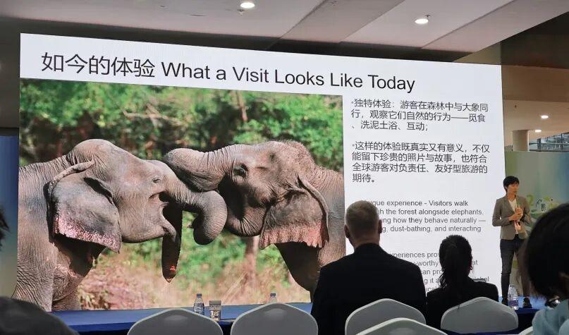 泰国彭世洛大象森林庇护所(Elephant Forest Phitsanulok,EFP)负责人、泰国萨普来万大象基金会主任Siraarpa Siriviriyakul女士分享了该景点从传统象营成功转型的经验。她介绍,EFP在多方支持下,通过学习新技能、调整市场策略与长期努力,成功转型为大象友好型景点。游客可以在森林中与大象保持安全距离同行,观察它们的自然行为,这种体验既真实,又具有吸引力。她表示,转型不仅显著提示了游客满意度和景区声誉,也证明了大象友好型旅游与商业成功可以并行。她呼吁更多旅游企业与EFP合作,共同打造可信赖、负责任的泰国旅游新形象。